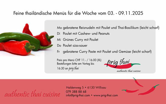 Wir versenden jeweils am Freitag vormittag den Menüplan für die Folgewoche.